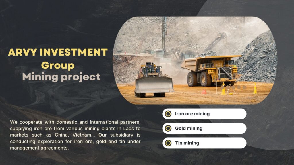 ARVY INVESTMENT CO.,LTD Group is a multi-industries investment firm based in Laos. Our group was established in 2008. We're currently investing in many industies from Mining, Real Estate, Agriculture, Automobile, Construction, Healthcare & Beauty, and more. With the rapid growth in the local socio-economic development and the foriegn investments in particular, our group have been developing a value-chain initiatives for business across the different sections. The group have been continued investing in many services and products including of projects for green environment with very high ambition to expand our business to local as well as seeking for opportunity to reach international market by means of joint-venture with protential business partners to tap our footprint in the next level.